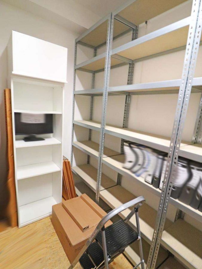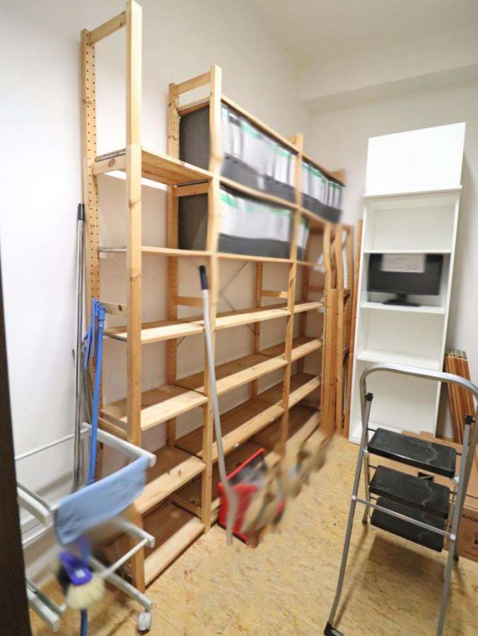 Im Anschluss an den hinten liegenden Besprechungsraum eine Abstellkammer, momentan als Aktenlager genutzt sowie eine sep. Toilette mit Waschbecken. Die Aktenkammer nach Umbau und Bedarf auch als kl. Küche verwendbar. Die Bürofläche, vormals auch mit dem etwas größeren Kellerabteil (12 m²) verbunden, momentan nur durch eine Leichtbauabtrennung geteilt.