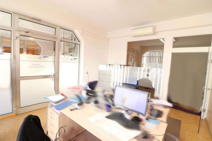 Im Angebot ist eine Praxis- oder Bürofläche (51,49 m²) mit einem großen Vorraumbüro und einem hinten liegenden zweiten Besprechungsraum. Das Frontbüro mit großer Fensterfront, durch den Lichteinfall hell und freundlich. Zugehörig ein separater Schaufensterkastenbereich rechts neben dem Eingang. Mehrere Gestaltungsmöglichkeiten sind denkbar, alternativ auch als kl. Praxis, z. B. für Hand- oder Fußpflege, sowie nach Umbau als kleine Wohnung geeignet.
