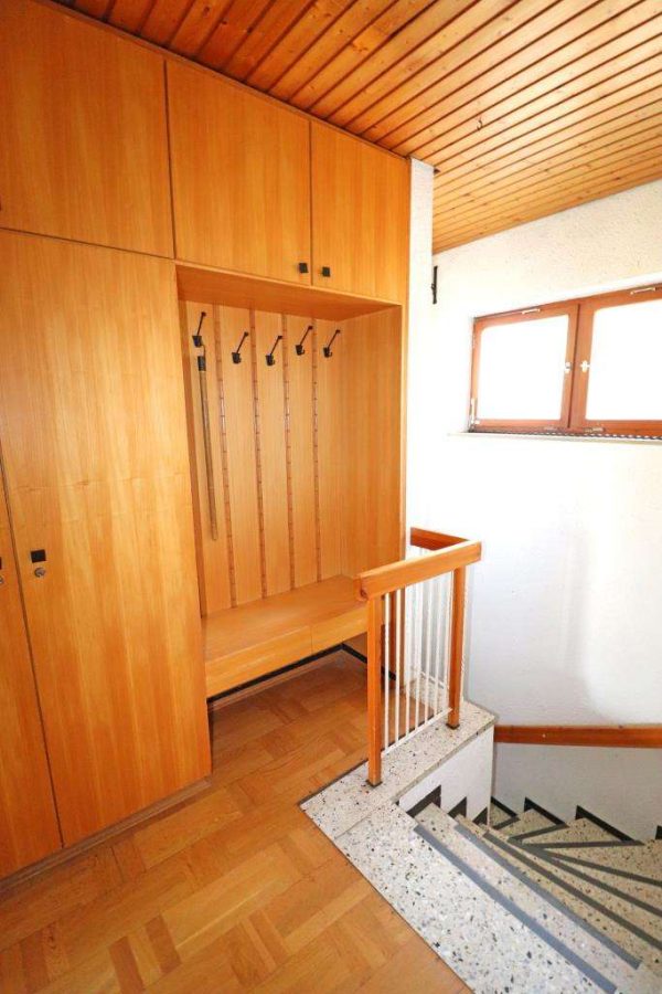 Der innen liegende Kellerabgang mit eingebauten Dielenschränken. Ansonsten im Keller ein Hobbyraum, zwei Vorratsräume, ein Heizungs- und Tankraum.