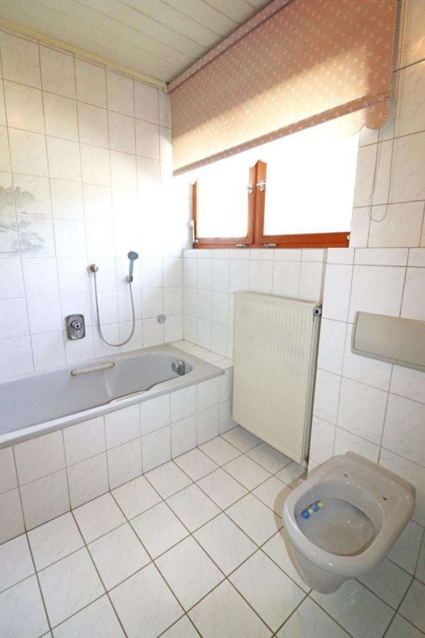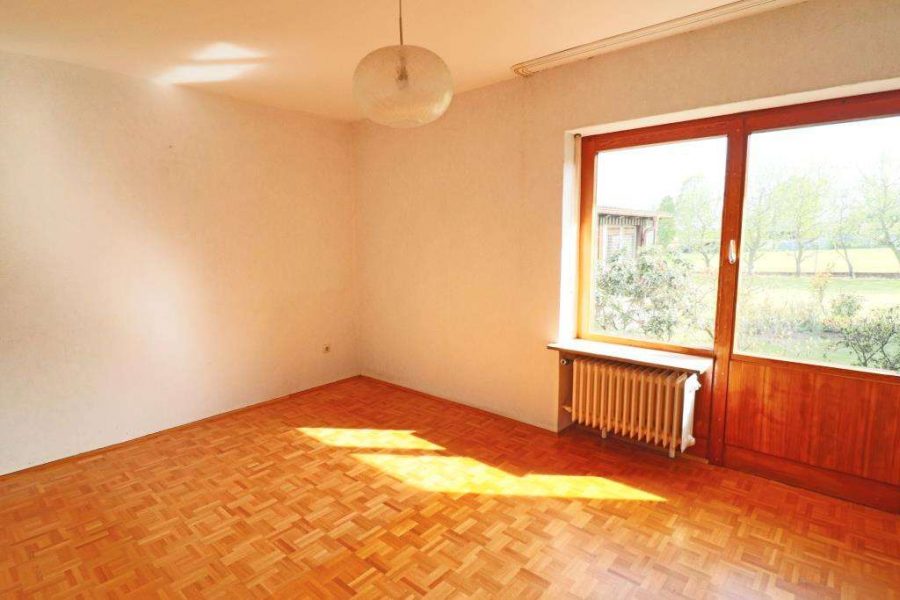 Die Wohnräume altersgerecht und auf einer Ebene. Räumlich ausgestattet mit Windfang, Gäste-WC, Küche, Esszimmer, Wohnzimmer, zwei Kinderzimmern und Schlafzimmer. Das Badezimmer ist mittig angeordnet und wurde ca. 1990 vergrößert und renoviert. Die Diele mit einem Zugang zur teilweise überdachten Terrasse und zum Garten.