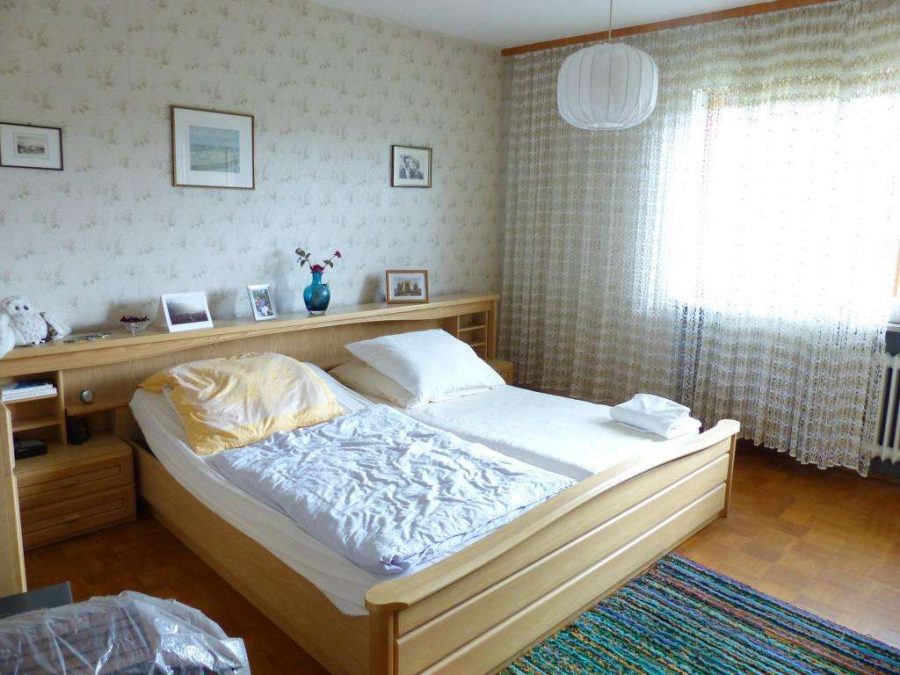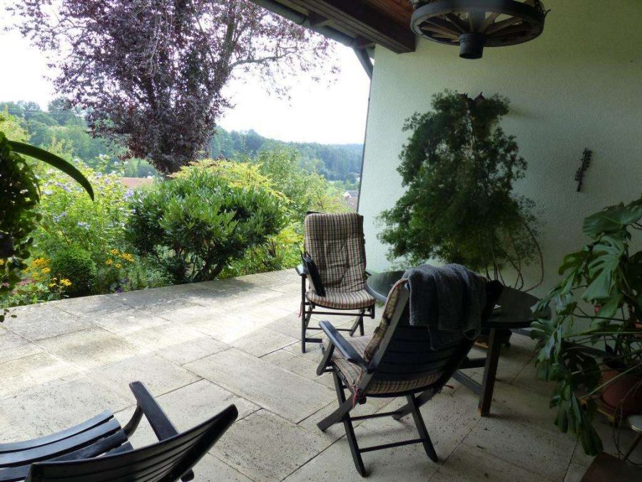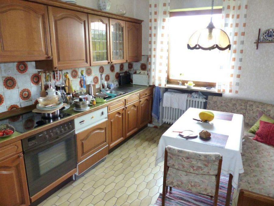 Bodenbeläge aus Parkett-, Naturstein-, PVC- und Teppichböden. Die Zentralheizung von 1986. Im Wohn- und Esszimmer ein Kachelofen und die Diele mit Fußbodenheizung. In Massivbauweise errichtet, mit herrlichem Ausblick in Richtung Süden.