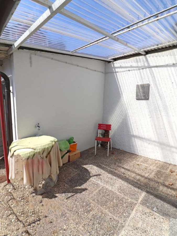 Das Nebengebäude verfügt über zwei nutzbare Räume und eignet sich ideal als Werkstatt oder Lagerraum. Der kleine, geschützte Freisitz lädt zusätzlich zum Entspannen im Freien ein.