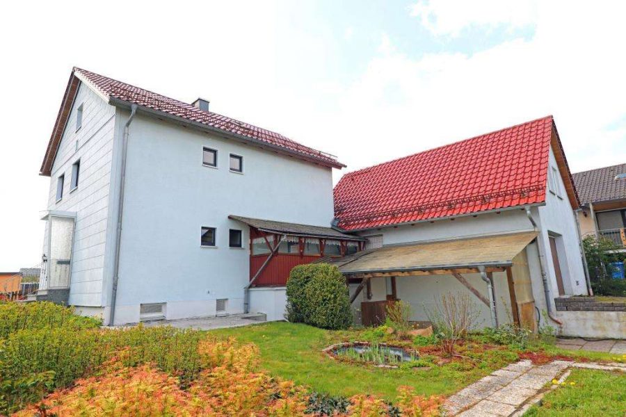 Das Wohnhaus, ursprünglich 1959 erbaut, seitdem immer wieder renoviert und umgebaut. Zeitgleich mit dem Neubau der Doppelgarage (2003) wurde auch das Hausdach mit den gleichen Dachziegeln belegt.