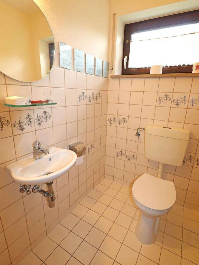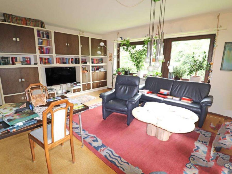 Der obere Wohnbereich mit drei Wohnräumen sowie Küche, Esszimmer und Badezimmer, alles auf einer Ebene. Wegen der Hanglage weiterer Wohnraum im Untergeschoss, insgesamt drei Räume und ein Badezimmer. Bei Bedarf kann das Dachgeschoss zusätzlich ausgebaut werden. Die Leitungen sind teilweise bereits vorhanden.