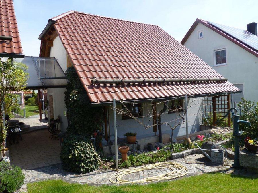 Ansprechende Gestaltung sowie ein herrlich angelegter Südgarten mit überdachtem Eingangsbereich, zwischen Haus und Garage sind vorhanden. Die große Doppelgarage mit einem seitlich wegfahrenden Sektionaltor und Montagegrube. Die unterkellerte Garage, mit überdachtem Kellerabgang, als großer Werkstattraum, ideal zur Holzlagerung für den Winter.