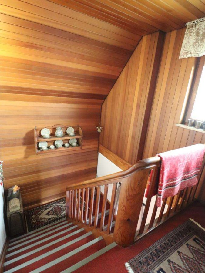 Im Eingangsbereich, die Verbindungstreppe zum Keller und zum Obergeschoss. Ansonsten im Erdgeschoss, ein großes Wohnzimmer, eine Wohnküche, eine Abstellkammer und ein Badezimmer mit Runddusche und dazugehörigen Badezimmermöbeln. Das Bad vor Kurzem renoviert und modern in der Gestaltung.