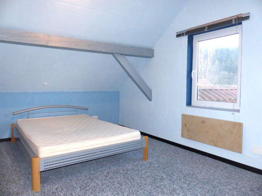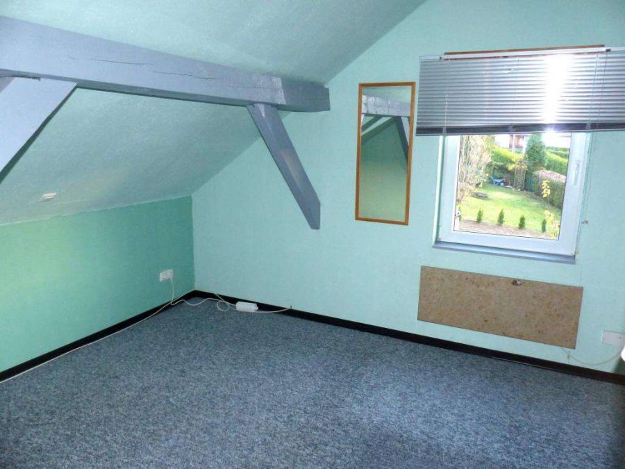 Im Obergeschoss, zwei weitere Schlafräume mit Schräge und ein Badezimmer mit Dusche. Das Haus massiv gebaut, mit SAT-Anlage und ohne Keller.