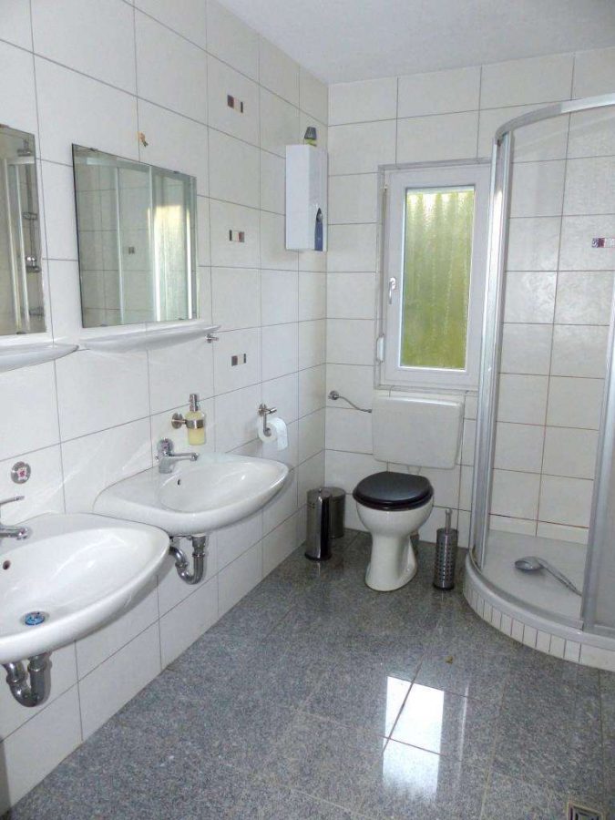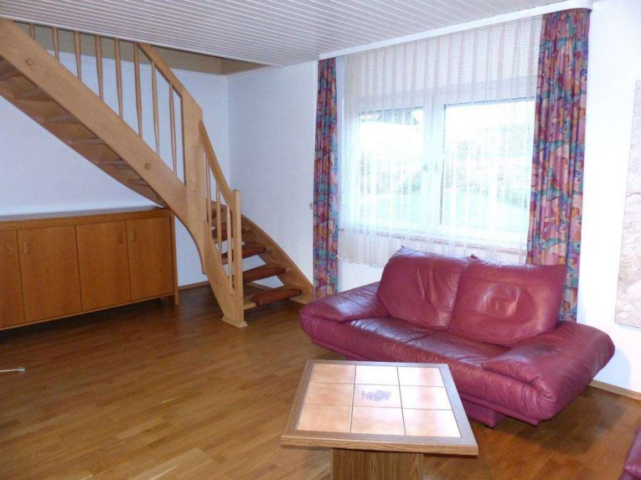 2011 wurde eine separate Eingangsdiele angebaut, mit genug Platz für Garderobe und Schuhschrank. Des Weiteren im Erdgeschoss, ein HWR mit Waschmaschinenanschluss, ein Kinderzimmer, ein Badezimmer mit Runddusche, WC und Doppelwaschbecken. Ansonsten eine Küche mit Einbauküche, ein Schlafzimmer und ein Wohnzimmer mit Wintergarten und offenen Treppenlauf zum ausgebauten Dachgeschoss.