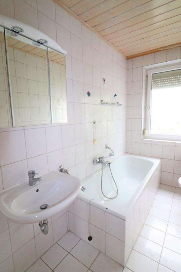 Einzelne Renovierungen wurden durchgeführt. Die Fenster sind teilweise erneuert, das Badezimmer im Erdgeschoss wurde irgendwann neu gestaltet sowie das Dach in einem guten Zustand. Das Treppenhaus ist vorgelagert. Somit hat jede Einheit einen eigenen Zugang zur Wohnung. Im EG und OG befinden sich jeweils eine 3 Zi.-Wohnung. Die EG-Wohnung mit Terrasse.