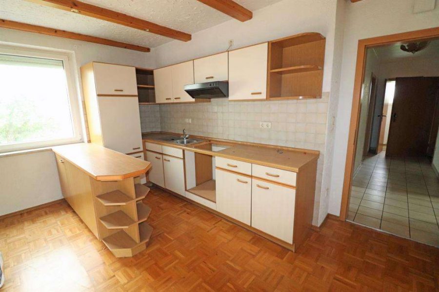 Die Bodenbeläge bestehend aus Fliesen-, Laminat- und Parkettböden. In Massivbauweise errichtet. Die gesamte Wärmeversorgung derzeit über Einzelöfen mit zentraler Öl-Versorgung. Im Kaufpreis enthalten, die Einbauküche im EG.