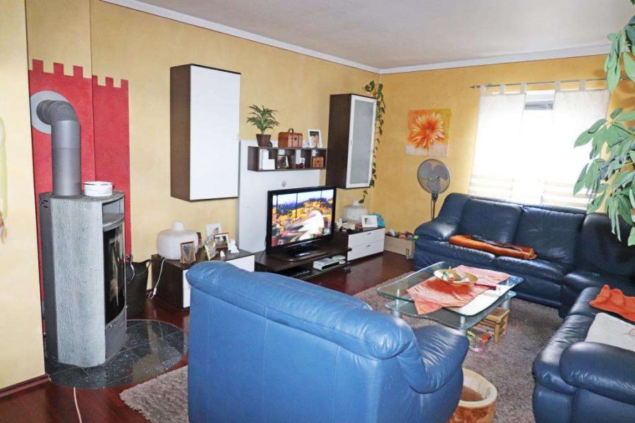 Die Böden sind mit Fliesen-, Holz und Vinylböden belegt. Die Terrasse mit Blick in den Garten und überdacht. Die Einbauküche im Erdgeschoss im Kaufpreis enthalten. Im Wohnzimmer, mittig ein Schwedenofen, ideal für die kalten Wintertage.