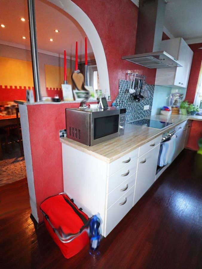 Die Einteilung wie folgt, alle Stockwerke verbunden über ein großzügiges, vorgelagertes Treppenhaus. Im Erdgeschoss ein großer Wohnbereich mit offen gehaltener Küche und anschließendem Esszimmer mit Zugang zur Terrasse. Rechts neben dem Eingang ein modernisiertes Badezimmer mit Dusche, Waschbecken und WC sowie ein weiteres Zimmer nutzbar als Gäste-Zimmer oder Büro.