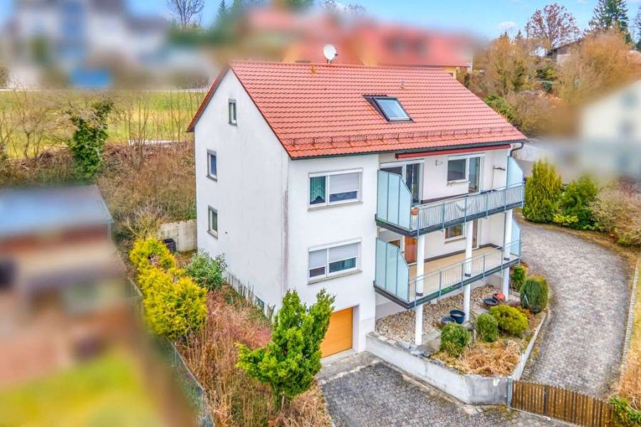 In ruhiger und bevorzugter Hanglage von Pressath befindet sich dieses freistehende Dreifamilienhaus mit herrlicher Fernsicht über die Stadt und die umliegende Landschaft. Die erhöhte Lage sorgt für ein angenehmes Maß an Privatsphäre sowie für einen unverbaubaren Ausblick, der besonders von den südlich ausgerichteten Balkonen eindrucksvoll zur Geltung kommt.