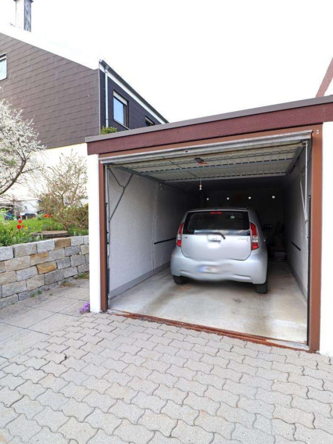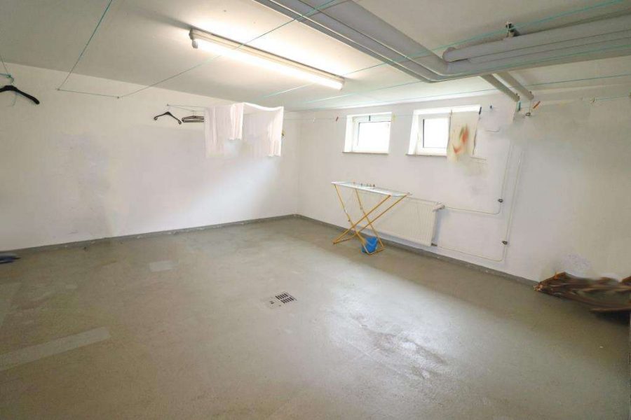 Zugehörig zur Wohnung ein großes Kellerabteil und eine Garage. Des Weiteren im Keller ein Trocken- und Fahrradraum zur gemeinschaftlichen Nutzung.