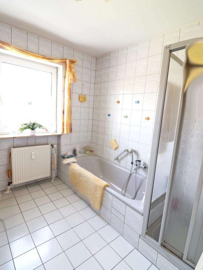 Die Bodenbeläge aus Fliesen und Teppichböden. Alle Kunststofffenster mit Isolierverglasung und gut gepflegt. Die Einbauküche gehört zur Wohnung und ist im Kaufpreis enthalten. Der Keller mit einem Anschluss für Waschmaschine und Trockner. Die Garage mit Stromanschluss und Licht.
