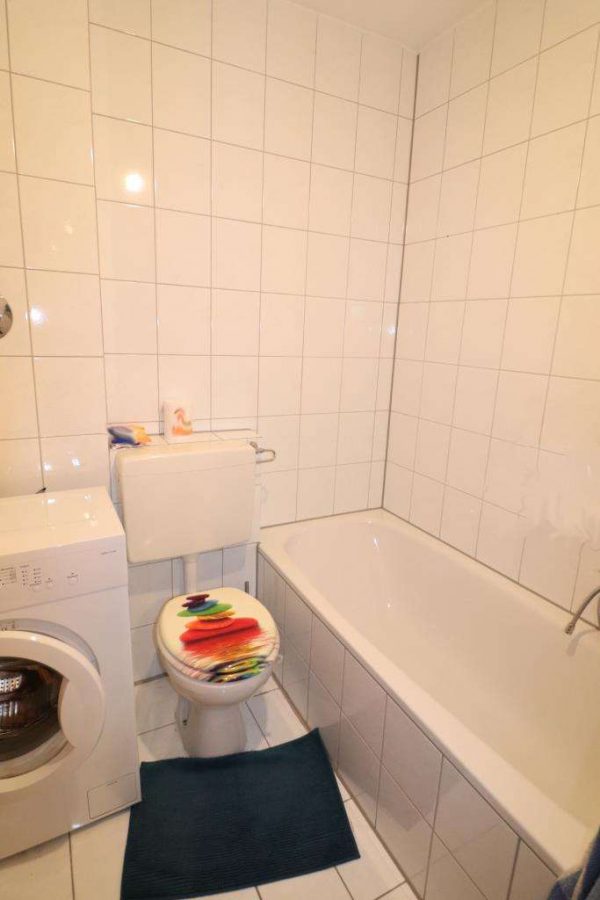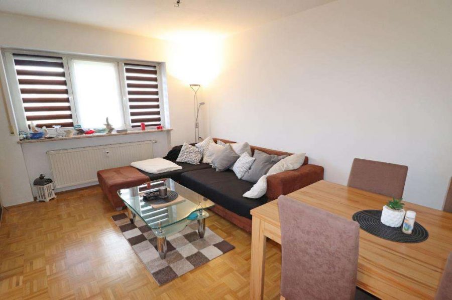 Angeboten wird eine gepflegte 2 Zi.-Eigentumswohnung mit moderner Raumaufteilung im 1. Obergeschoss. In der Diele befindet sich ein praktischer Einbauschrank, mit genug Platz für Kleidung und Schuhe. Daneben ein Schlafzimmer und das Badezimmer mit Badewanne, Dusche und WC. Das Wohn- und Esszimmer ist lichtdurchflutet und zur Küche hin offen gehalten. Der Rundbalkon mit doppelseitigen Balkontüren dient bei Bedarf als Verlängerung des Wohnbereichs.
