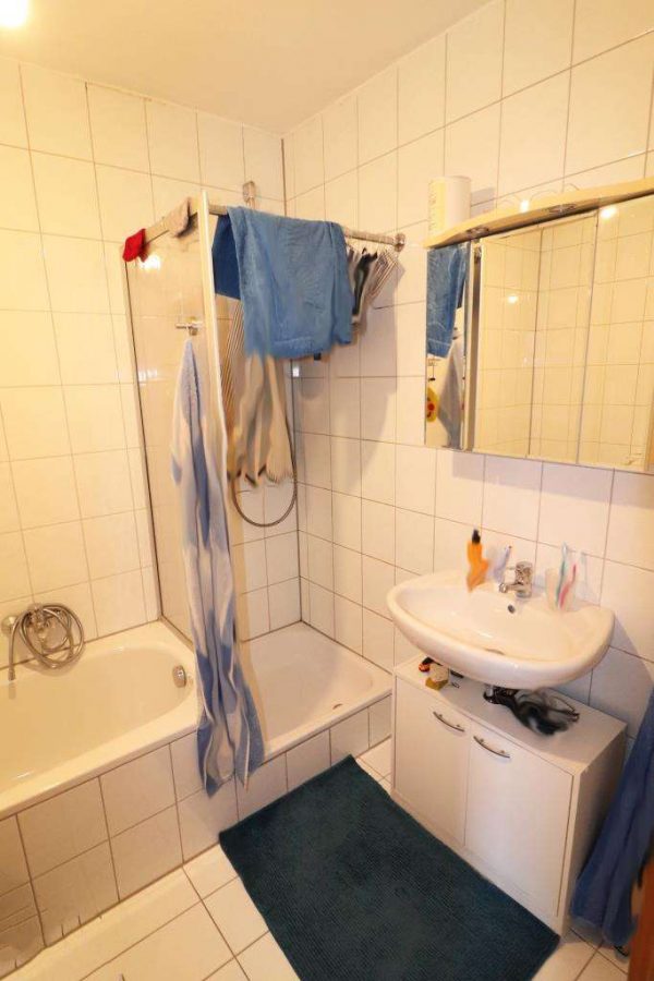 Im Wohn- Ess- und Küchenbereich Parkettboden, ansonsten Fliesen und Vinylböden. Das Bad mit Dusche und Badewanne. Des Weiteren Kunststofffenster und eine erneuerte Gas-Brennwertheizung von 2015.