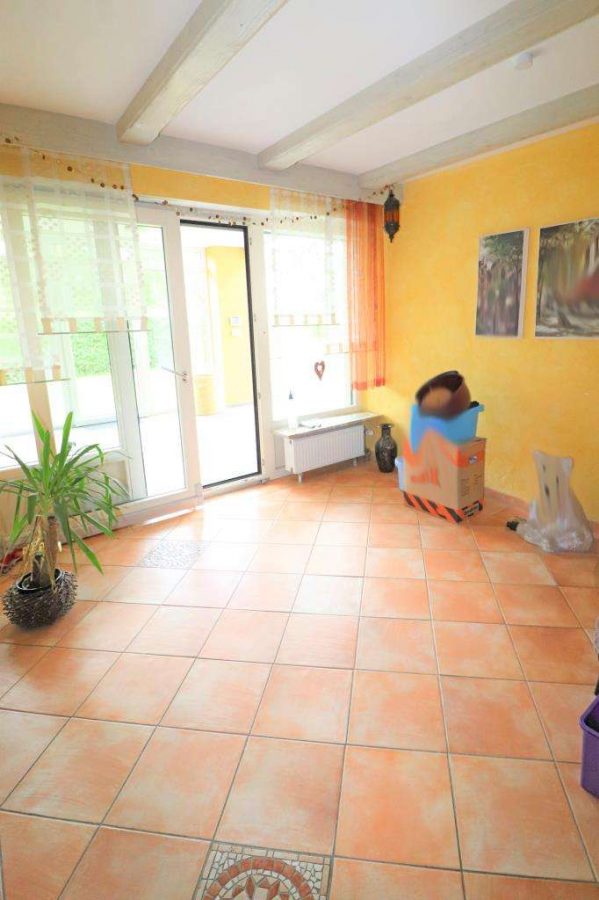 Das Besondere, der zu vermietende Wohnraum ist durch den angebauten Wintergarten räumlich übergroß gestaltet. Der Zugang zum Wintergarten und dem dahinter liegenden Garten über das Wohn- und Esszimmer. Das vorgelagerte Treppenhaus mit Verbindung zum Kellerabteil und dem gemeinsam genutztem Waschraum im Keller.