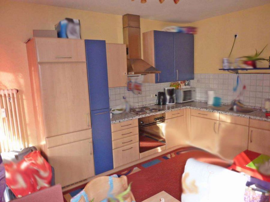 Laminat- und Fliesenböden. Das Bad mit Dusche und Wanne, Gas-ZH und Kunststofffenstern. Der Trocken- und Fahrradraum zur gemeinschaftlichen Nutzung. Die Nutzung der Einbauküche ist im Mietzins bereits enthalten.