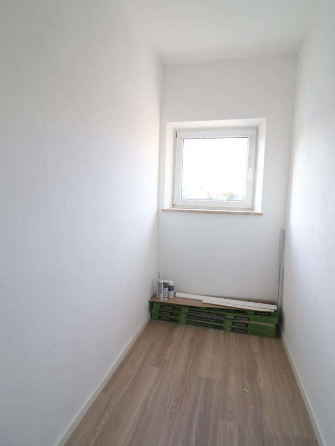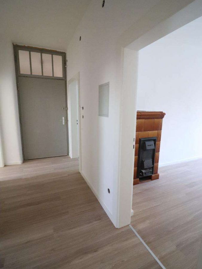 Die Bodenbeläge mit Fliesen und Laminatböden belegt. Die gesamte Wohnung mit Kunststofffenstern sowie die Böden, die Wände und die Elektroverteilung erneuert. Besondere wertvoll die große Abstellkammer und die zusätzliche Speise in der Küche. Weiter eine Gas-Etagenheizung, die Kosten für die Vorauszahlung bei den Stadtwerken trägt der Mieter selbst. Zwischen Wohn- und Kinderzimmer ein Kachelofen für Holz, ideal für die kalten Wintertage.